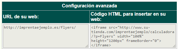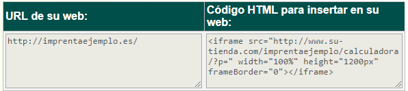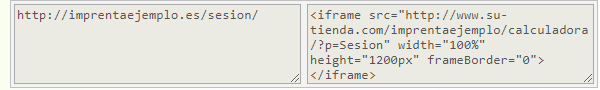 Forzosamente la URL de su página de inicio de sesión debe ser esta: https://imprentaejemplo.es/sesion/ - Copie el código HTML que corresponde a la página principal (el segundo código que aparece en la configuración de su Código HTML):