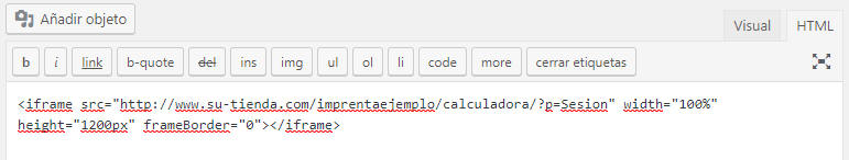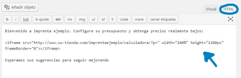 - Pegue el códifo HTML en su nueva página de WordPress: