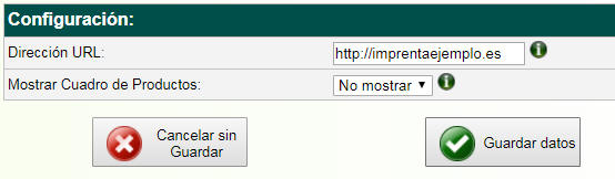- Mostrar Cuadro de Productos: No mostrar.