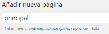 - Observe la URL que se le ha asignado a su nueva página: https://imprentaejemplo.es/principal/